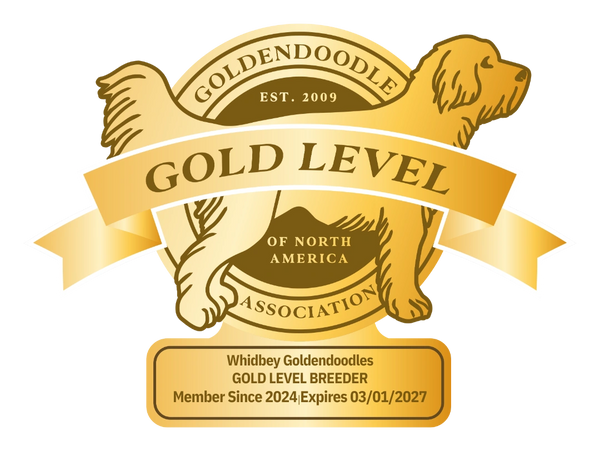 We are a small, family breeder of multigenerational, petite, mini, medium and standard size Goldendoodles. We are located on Whidbey Island in Washington State. Our dogs are our family; they live in our home and are very well loved. Our puppies are just as important to us, so we have had full genetic health testing done on all of our breeding dogs, as well as OFA certifications for hips, elbows, hearts and eyes and patella’s. We want to ensure we are breeding the healthiest puppies possible. We do offer a two year health guarantee on genetic diseases.