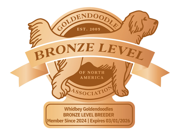We are a small, family breeder of multigenerational, standard, medium and mini size Goldendoodles. We are located on Whidbey Island in Washington State. Our dogs are our family; they live in our home and are very well loved. Our puppies are just as important to us, so we have had full genetic health testing done on all of our breeding dogs, as well as OFA certifications for hips, elbows, hearts and eyes. We want to ensure we are breeding the healthiest puppies possible. We do offer a two year health guarantee on genetic diseases.