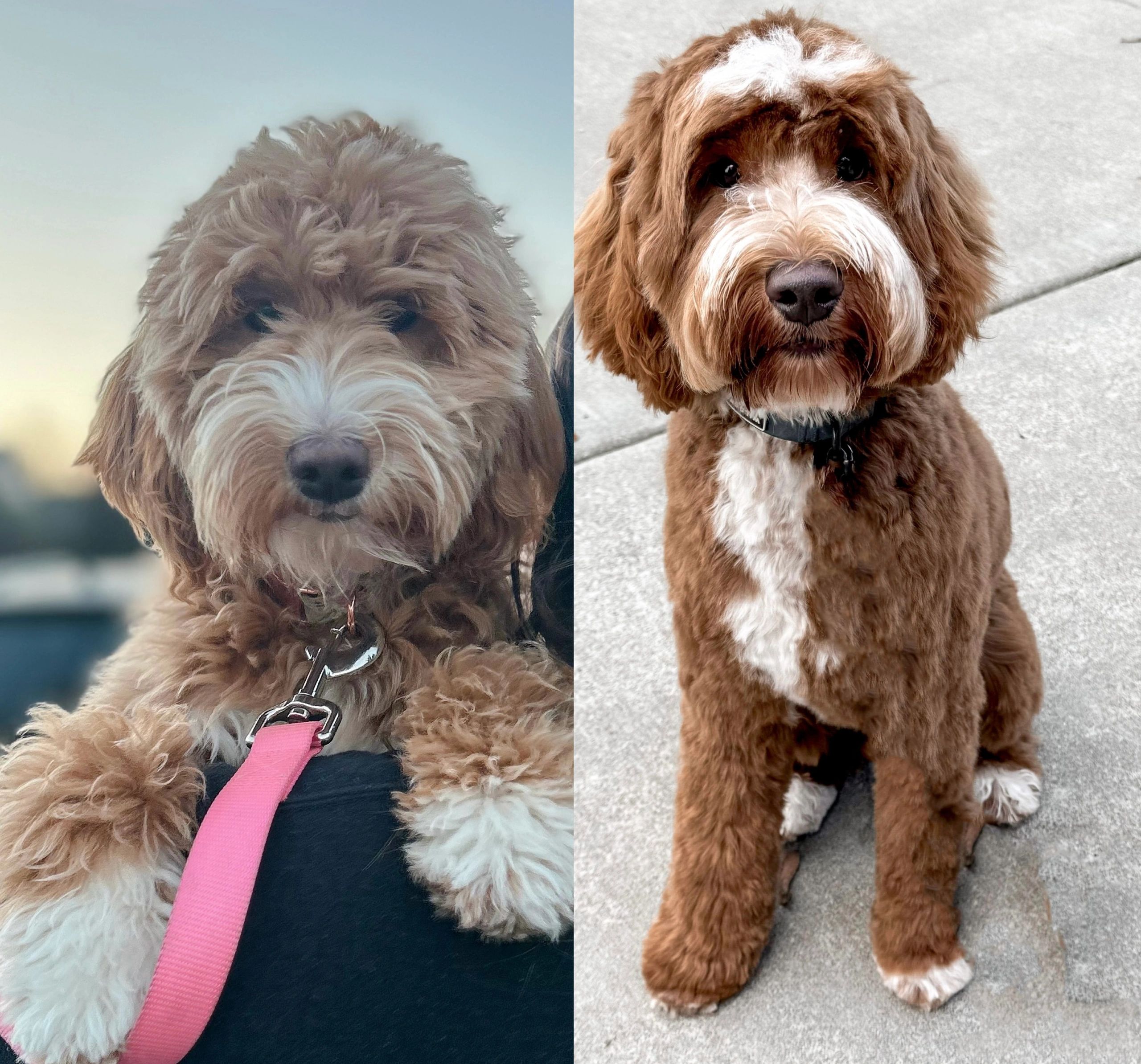Rosie and Sven will have standard size puppies. 50-60lbs. We expect them to have puppies who are red abstract or parti, cream abstract or part, blue Merle abstract or parti, black abstract or parti, and chocolate abstract or parti. Wavy and curly coats. Waitlist is full until we have an X-ray for puppy count.